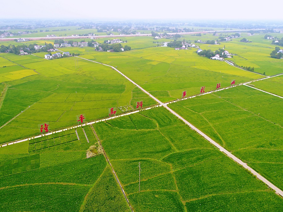 2019年9月17日,益阳市赫山区笔架山乡“隆平高科”1200亩基地,红瓦民居点缀其间,集中连片的良田丰收在望。