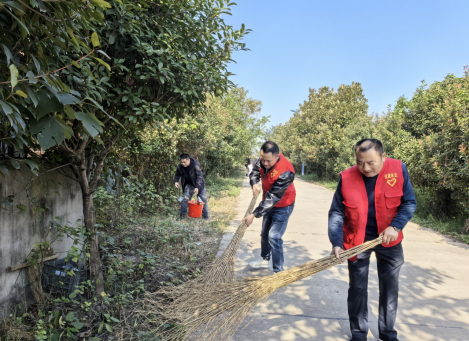 上午,第一小组与村“两委”干部座谈,围绕稻虾种养特色产业发展、窄路加宽项目推进、村级集体经济增收等核心议题深入研讨,初步形成“政策对接+资源统筹”帮扶思路,切实把党组织的政治优势转化为破解乡村发展难题的实际效能。同时,第二小组联合村上党员开展卫生清扫志愿服务,手持扫帚、铁锹等工具,对村内广场及周边道路的杂草、杂物进行全面清理,助力改善人居环境,践行乡村振兴“生态宜居”要求。
